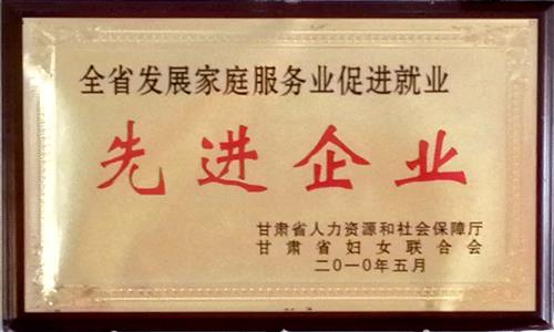 2010年5月公司被甘肅省人力資源和社會(huì)保障廳、甘肅省婦女聯(lián)合會(huì)評為“全省發(fā)展家庭服務(wù)業(yè)促進(jìn)就業(yè)先進(jìn)企業(yè)”;